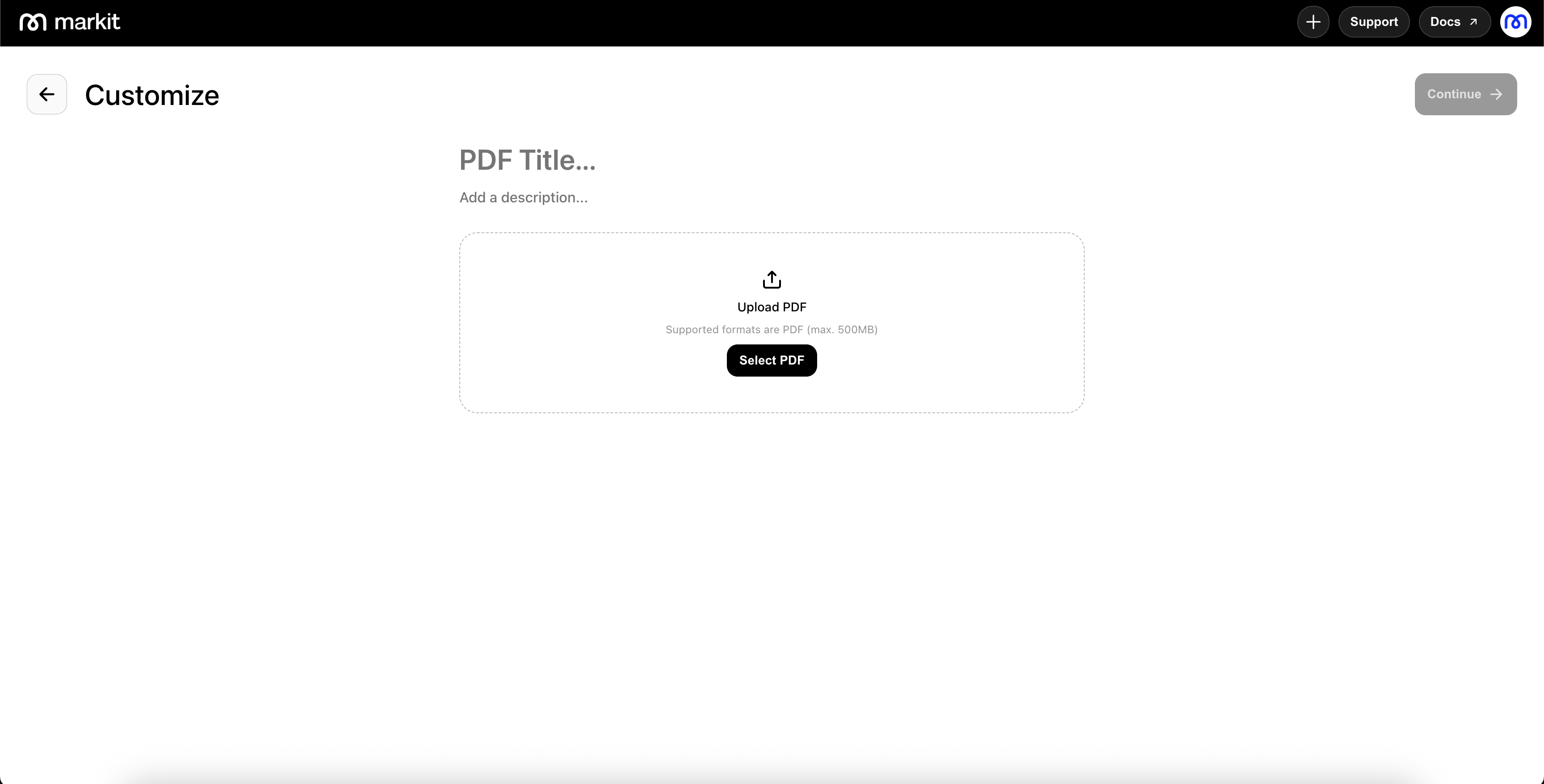 The upload screen allows you to upload a PDF file from your computer. You can select any PDF document from your device to share with your audience.